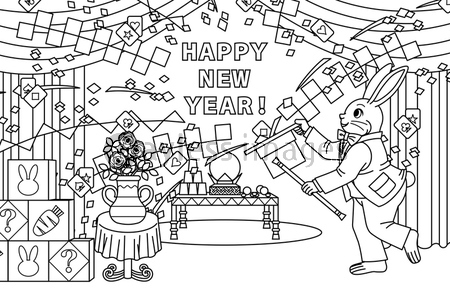 線画 塗り絵 モノクロ 一色 単色 ラインアート 白黒 奇術 マジシャン 手品 マジック 手品師 擬人化 HAPPYNEWYEAR 洋風年賀状 洋風 英語 兎 ウサギ うさぎ 卯年 卯 卯年イラスト 卯年年賀状 動物 年賀状 年賀 賀詞 はがきテンプレート 年賀状素材 年賀素材 年賀状テンプレート 新年 お正月 正月 ポストカード グリーティングカード テンプレート 祝賀 お祝い 祝う 祝 おめでたい おめでとう イラスト デザイン アート グラフィック 可愛い かわいい カワイイ ファンシー ポップ キャラクター お洒落