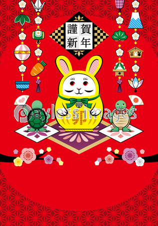 正月飾り 亀 かめ カメ 兎と亀 ウサギとカメ 達磨 だるま ダルマ 人形 和風 縁起物 置物 置き物 飾り物 飾り 小物 雑貨 オーナメント オブジェ 兎 ウサギ うさぎ 卯年 卯 卯年イラスト 卯年年賀状 動物 年賀状 年賀 賀詞 はがきテンプレート 年賀状素材 年賀素材 年賀状テンプレート ポストカード グリーティングカード テンプレート おめでとう イラスト デザイン アート グラフィック 可愛い かわいい カワイイ ファンシー ポップ キャラクター お洒落 おしゃれ 華やか カラフル 卯年デザイン