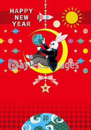 地球儀 ロケット 宇宙船 宇宙 天体 地球 惑星 衛星 太陽 恒星 星 月 学者 HAPPY NEW YEAR 兎 ウサギ うさぎ 卯年 卯 卯年イラスト 卯年年賀状 動物 年賀状 年賀 賀詞 はがきテンプレート 年賀状素材 年賀素材 年賀状テンプレート ポストカード グリーティングカード テンプレート おめでとう イラスト デザイン アート グラフィック 可愛い かわいい カワイイ ファンシー ポップ キャラクター お洒落 華やか カラフル 卯年デザイン