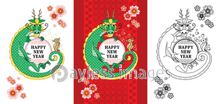 龍 竜 ドラゴン 辰 タツノオトシゴ たつのおとしご 竜の落とし子 辰年 辰年イラスト 辰年年賀状 十二支 干支 動物 年賀状 年賀 賀詞 年賀状素材 年賀素材 新年 挨拶状 イラスト素材 デザイン素材 ポストカード グリーティングカード 和 和風 祝賀 お祝い 祝う 祝 おめでたい おめでとう イラスト デザイン 可愛い かわいい カワイイ キャラクター カジュアル おしゃれ お洒落 華やか ラインアート 白黒 線画 塗り絵 ぬりえ モノクロ モノクローム モノトーン 白背景 白地 コピースペース ベクター ベクターイラスト ベクターアート HAPPY NEW YEAR