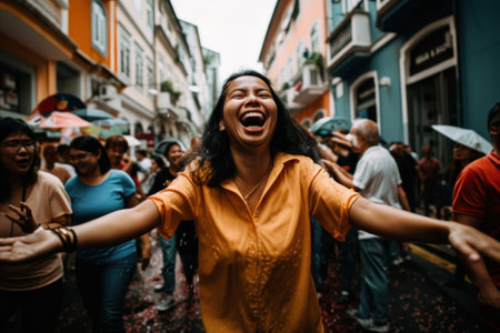• A group of people walking down a street next to each other. AI generative image.rf10205390286