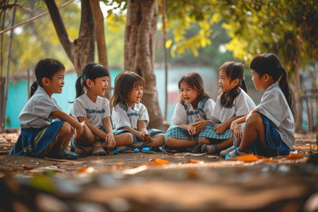 • School children playing a game for learning in a playground Ai generatedrf10224056636