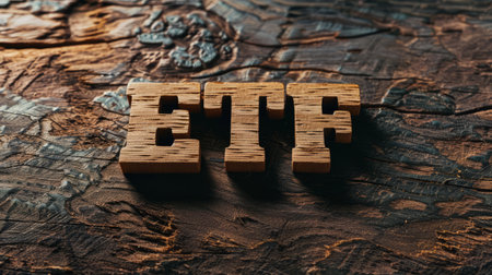 This image showcases wooden blocks spelling ETF, surrounded by coins and financial icons. It represents unique investment strategies and growth in finance, perfect for financial content.rf10243029844