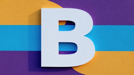 A closeup of large, stylized letter b on vibrant wall featuring purple, orange, and blue colors, creating striking visual impact. artwork showcases modern design elementsrf10254924408