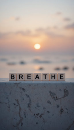 A serene sunset background featuring wooden blocks spellingrf10258372409