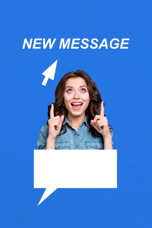 Artwork collage template composite sketch of mind speech feedback thought communication computer pointer new message young lady smilerf10247881474