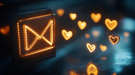 A captivating image featuring a glowing mail icon surrounded by floating hearts, set against a dark background. Perfect for themes of love and communication.rf10257523884