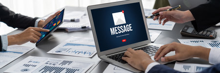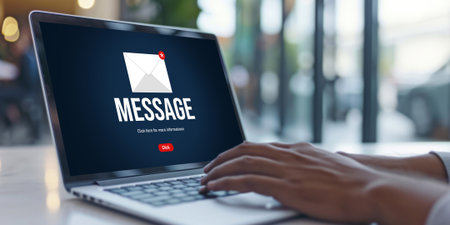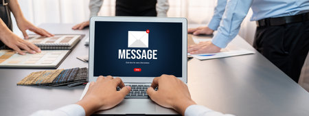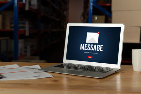 Email notification message showing on computer screen snugly. Digital marketing message information text from business to customer clientrf10249599244