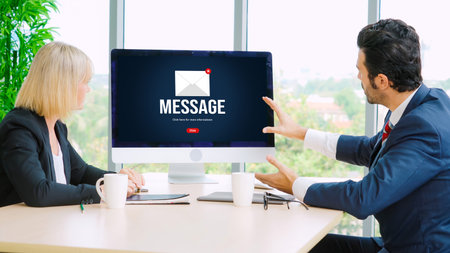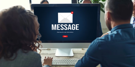 Email notification message showing on computer screen brisk. Digital marketing message information text from business to customer clientrf10250032828