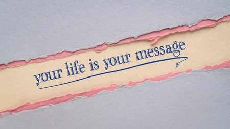 your life is your message - inspirational note on a rag paper, diagonal web banner, personal development conceptrf10194878270