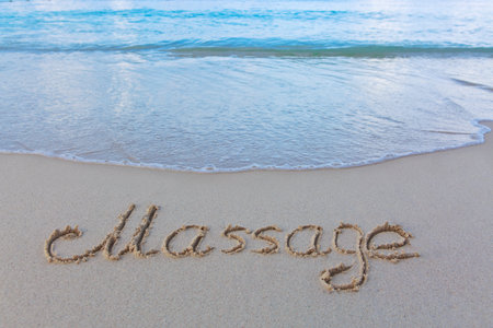 Word massage written on the sand of the beach. Beach and waves background.rf10217052776