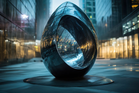 the metal egg in the desert is a stunning uhd image capturing a 3rd world planet. this realistic landscape showcases soft edges and multiple exposures, highlighting the beauty of australian landscapes. the sparkling water reflections add a touch of magic to the scene, while the prairiecore aesthetic and influence of artist sopheap pich create a unique and captivating composition. ai generatedrf10233278977