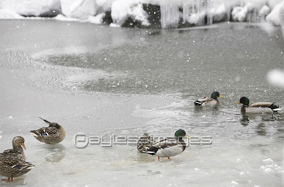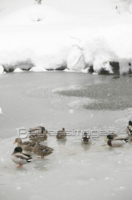 日本 新潟県 鴨 鳥 とり 冬 氷 雪 池 寒い 我慢 群れ 屋外 動物 生き物 生物 カモ アジア 東洋 新潟 中部地方 中部 北陸地方 北陸 甲信越地方 信越地方 北信越地方 鳥類 ゆき スノー snow どうぶつ いきもの 生きもの いき物