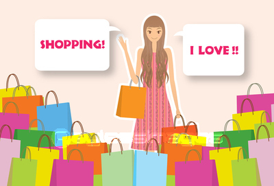 SALE かわいい ひと イラスト キュート クリアランス ショッピング スマイル セール バーゲン バーゲンセール ポップ ヤング ライフスタイル ワンピース 可愛い 若 若い 若者 女 女の子 女性 笑顔 人 人物 茶髪 買い物 買い物袋 買物