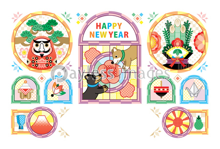 戌 戌年 犬 年賀状 年賀 2018 2030 2018年 2030年 年賀状素材 年賀素材 素材 年賀状用 年賀状テンプレート だるま 鏡餅 門松 ステンドグラス HAPPYNEWYEAR 新年 お正月 正月 日本 縁起物 可愛い かわいい ポップ 和 和風 キャラクター イラスト デザイン アート グラフィック 挿絵 お正月イメージ 年賀イメージ 白背景 白バック 動物 ポストカード グリーティングカード テンプレート 完成年賀状 祝賀 お祝い 祝う 楽しい 華やか カラフル はがきテンプレート 年賀2018 賀詞
