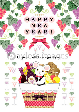 葡萄 ブドウ ぶどう ワイン 果物 フルーツ チーズ 食べ物 バスケット 籠 かご イラスト デザイン 鼠 ネズミ ねずみ 子年 白背景 動物 年賀状 年賀 賀詞 英語 英文 英字 はがきテンプレート 年賀状テンプレート 挨拶文 挨拶状 汎用 ポストカード グリーティングカード テンプレート 完成年賀状 洋風年賀状 洋風 祝賀 お祝い 祝う 祝 可愛い かわいい カワイイ ファンシー メルヘン ポップ キャラクター お洒落 華やか カラフル 子年イラスト 子年年賀状 十二支 干支 子 素材 イラスト素材 デザイン素材 年賀状素材 はがきサイズ 葉書サイズ ハガキサイズ カット アート グラフィック イメージ HAPPY NEW YEAR