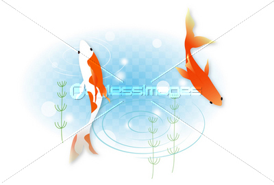 金魚 小赤 きんぎょ 和金 魚 生き物 水 水面 波紋 葉 植物 藻 泳ぐ 綺麗 きれい 和 和風 イラスト 素材 挿絵 カット 画像 イメージ 絵 デザイン 動物 どうぶつ 生物 いきもの 生きもの いき物 葉っぱ はっぱ 和風イメージ
