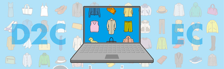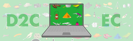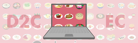 D2C ダイレクト・トゥ・コンシューマー EC Eコマース 電子商取引 直販 デジタル・トランスフォーメーション DX ビジネス 取引 メーカー 消費者 ショッピング 購買 買い物 商品 ネットワーク インターネット ネット ウェッブ デジタル 料理 食事 食材 宅配 デリバリー テクノロジー イノベーション 未来 イラスト ベクター カラフル デザイン