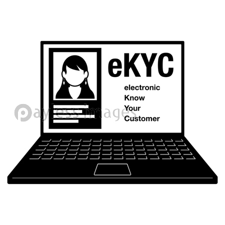 electronic Know Your Customer eKYC 電子本人認証 セキュリティ 認証 確認 電子回路 コンピューター パソコン ネットワーク インターネット 保護 防御 パスワード 人 顧客 カスタマー 電子商取引 EC デジタルトランスフォーメーション DX ビジネス テクノロジー クレジットカード 銀行 安全 イラスト ベクター アイコン デザイン 緑