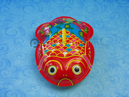 夏 金魚 サマー SUMMER きんぎょ レトロ おもちゃ なつかしい 懐かしい ブリキ ぶりき 玩具 昔懐かしい キンギョ インテリア 夏のイメージ イメージ 涼しい 背景 コピースペース テキストスペース 青背景 青バック 日本 スティルライフ オブジェクト 和 和風 アンティーク 夏イメージ