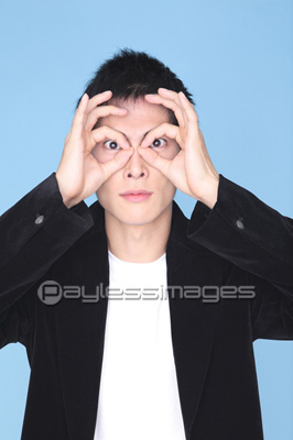 「指で眼鏡を模る男性」はフリーイメージです。メンバー登録で無料でダウンロードできます。