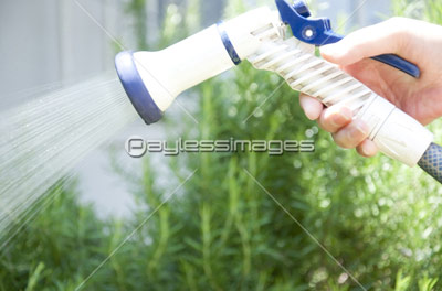 「庭の植物に水やりをするシニア女性の手元」はフリーイメージです。メンバー登録で無料でダウンロードできます。