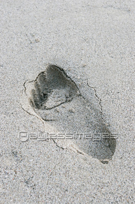 足跡 ビーチ 砂浜 砂 はだし 裸足 右足 右 海 自然 風景