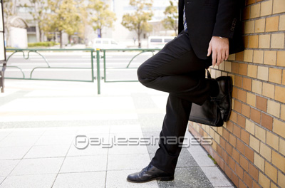 「壁に寄り掛かるビジネスマンの足元」はフリーイメージです。メンバー登録で無料でダウンロードできます。