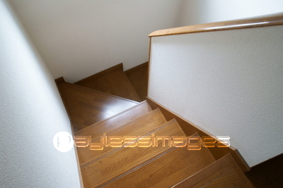 階段 屋内階段 住宅 室内 木製 手摺 木目 茶色 白色 インテリア 屋内 住居 家