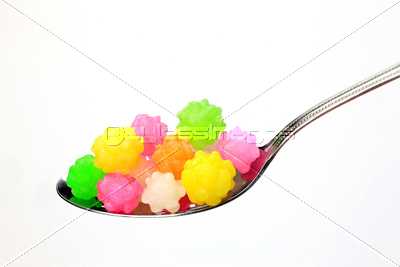 お菓子 こんぺいとう カラフル スプーン 和菓子 日本 甘い 白バック 白背景 砂糖 砂糖菓子 菓子 金平糖 食べ物 駄菓子 アジア 東洋 無背景 ホワイトバック 食物