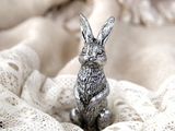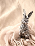 ウサギ うさぎ 兎 動物 金属 金属製 銀色 置物 布 ベージュ 1匹 雑貨 淡い色 屋内 小物 1個 横向き 白バック 兔 ウサギ 生き物 無背景 ホワイトバック