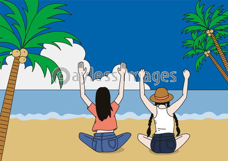 女同士 女子会 夏 ビーチ 海岸 海 海辺 夏休み ホリデー バカンス リゾート 常夏 女性 女 若い 水着 帽子 麦わら帽子 雲 白い雲 青い空 晴天 晴れ 青空 青い海 イラスト リラックス 人物 風景 自然 空 20代 かわいい 真夏 旅行 女の子 休暇 明るい ライフスタイル 人 休日 さわやか トロピカル 水 バケーション 友達 仲間 二人旅 友情