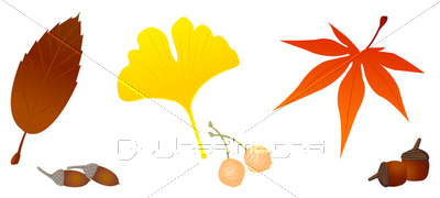 イラスト 秋 秋イメージ 紅葉 植物 落ち葉 葉 葉っぱ 楓 カエデ かえで イチョウ いちょう 銀杏 ぎんなん どんぐり ドングリ ギンナン 複数 シンプル 白バック 無背景 ホワイトバック