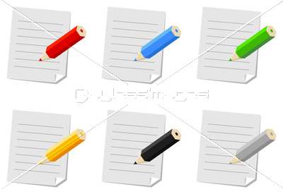 イラスト 書類 紙 ペーパー 鉛筆 エンピツ 色鉛筆 ビジネス 仕事 勉強 宿題 授業 複数 カラフル ポップ テキスト ドキュメント えんぴつ ビジネスイメージ
