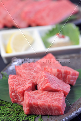 飲食 食べ物 食材 やきにく 焼肉 バーベキュー 肉 牛肉 和牛 霜降り ロース 飾り包丁 飾り切り 高級 ヒバ レモン クローズアップ 食物 フード BBQ 焼き肉 ビーフ ミート