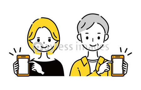 スマホ スマートフォン 中高年 シニア ミドル イラスト 人物 高齢者 笑顔 操作 アプリ 画面 ディスプレイ 男性 女性 男女 カップル かわいい シンプル おしゃれ モバイル ミドル世代 シニア世代 40代 50代 60代 中年 家族 操作する 上半身 白バック ベクター