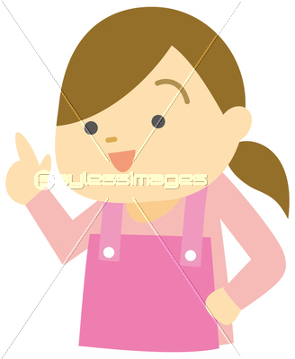 イラスト イラストレーション 主婦 奥さん お母さん おかあさん 母親 ママ エプロン 保母さん 幼稚園 先生 保育士 動作 指さす これ 完璧 母 母さん