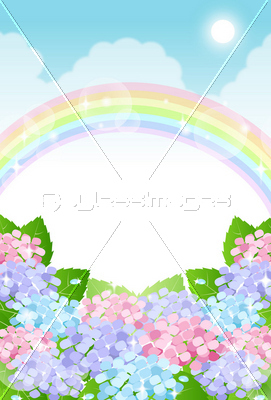 「虹と紫陽花」はフリーイメージです。