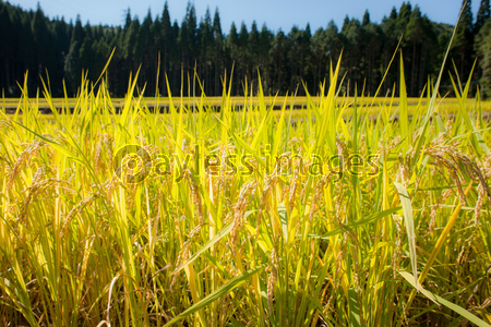稲 米 緑 風 食べ物 コメ 青空 収穫の秋 農家 農業 黄金色 コピースペース 稲穂
