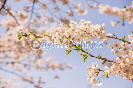 さくら サクラ 桜 空 青空 雲 自然 春 花 植物 背景 背景素材 無人 日本 福島県