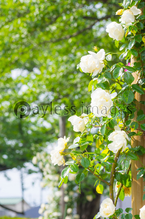 ばら バラ 薔薇 花 フラワー トゲ 風景 明るい カワイイ きれい 美しい 屋外 公園 バラ園 花壇 園芸 ガーデニング 6月 5月 新緑 緑 植物 白い