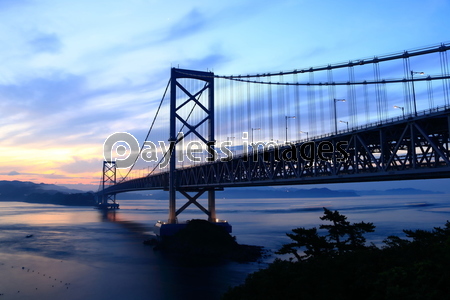 「朝焼けの空と大鳴門橋」はフリーイメージです。メンバー登録で無料でダウンロードできます。