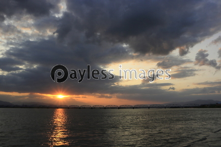 「夕暮れ時の吉野川と眉山」はフリーイメージです。メンバー登録で無料でダウンロードできます。
