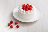 ケーキ ホールケーキ デコレーションケーキ スタジオ撮影 生クリーム いちご 誕生日 白タイル お祝い クリスマスケーキ 手作り ホイップ イメージ 木目 白皿 丸皿 シンプル ケーキ屋 洋菓子